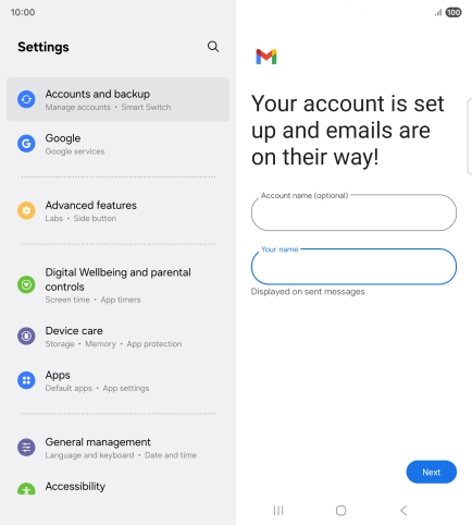 Press the field below "Account name (optional)" and key in the required name.