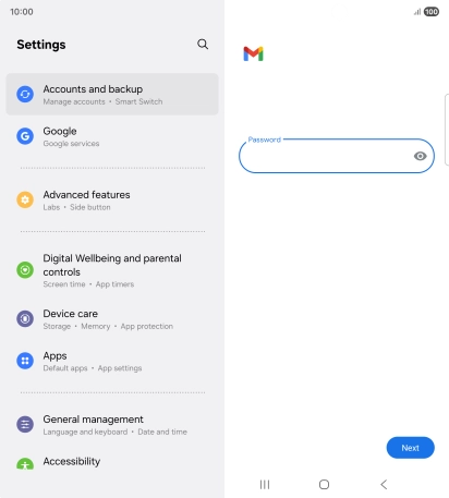 Press the field below "Password" and key in the password for your email account.