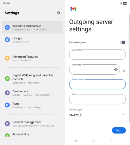 Press the field below "SMTP server" and key in the name of your email provider's outgoing server.