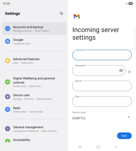 Press the field below "Server" and key in the name of your email provider's incoming server.