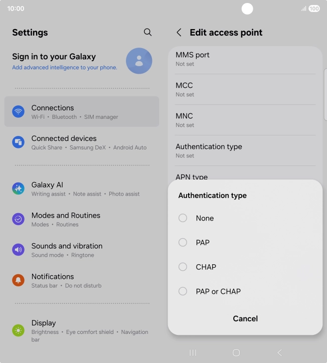 10 Enter APN type